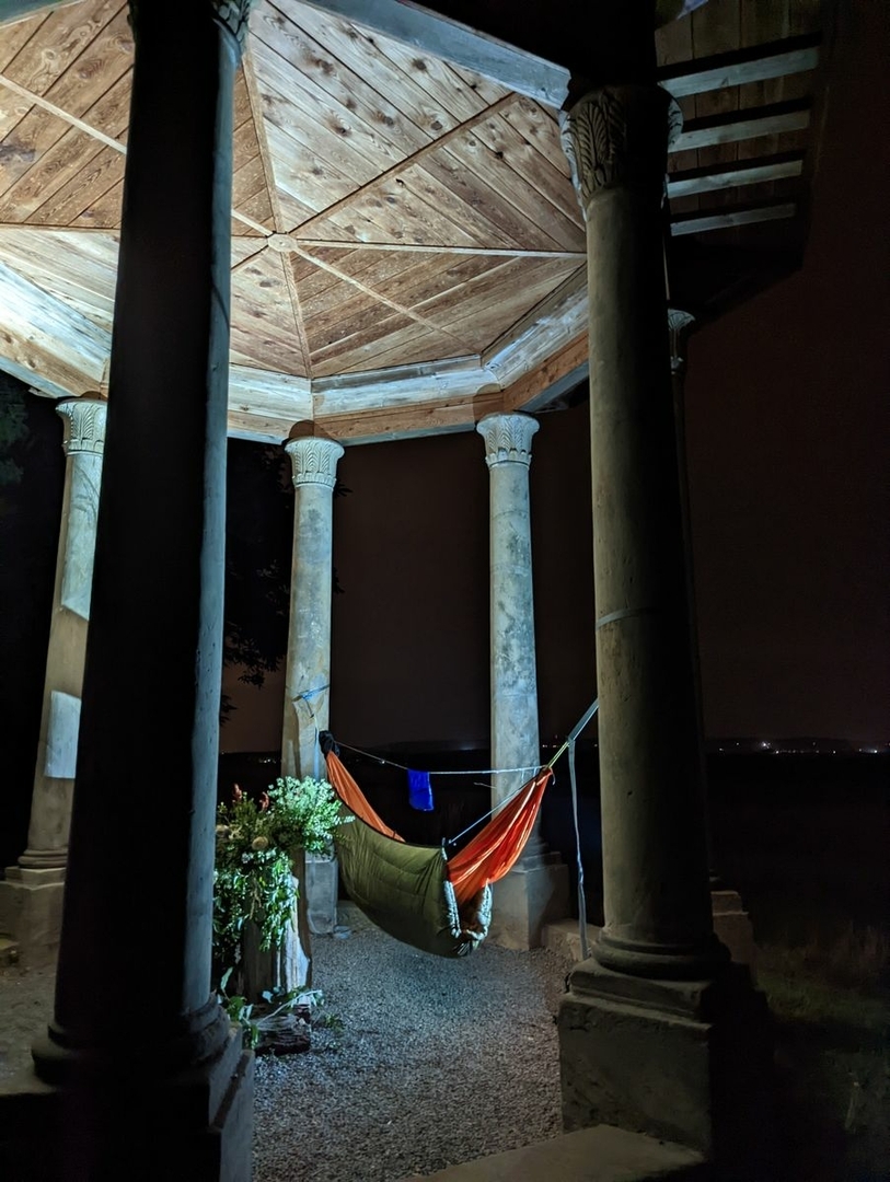 Irgendwann kam dann die Idee, auch mal darin zu Schlafen. Also Hängematte, Isomatte und Quilt geschnappt und im Harz eine Nacht abgehangen. Der Horror.