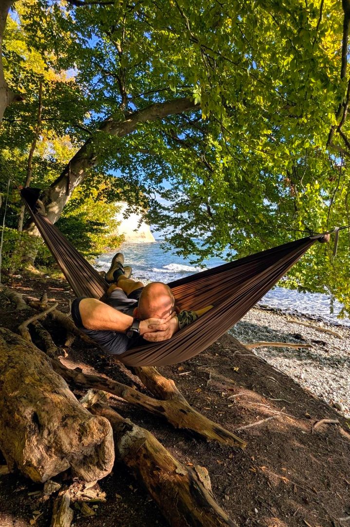 Neben dem Materialtest des Gurtbandes wurden baumseitig zwei Soft Shackles eingesetzt. Als weitere Premiere wurde die WB Traveler mit gesichertem Becket Hitch fixiert. Das hat schon was! Keine Ahnung, warum ich mich solange davor gedrückt habe. Vermutlich, weil die Beetle Buckles einfach solide funktionieren und nahezu idiotensicher sind. 😉