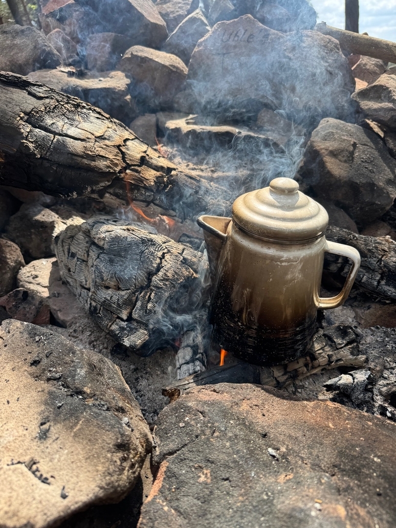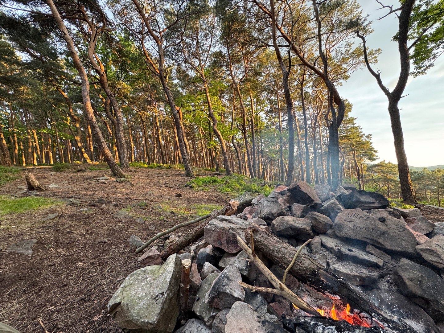 Während ich mich um Tarp und Matten gekümmert habe, hat sich mein Begleiter um die Feuerstelle gekümmert... Auf den Trekking-Camps gibt es eine zugelassene und vorbereitete Feuerstelle, was wohl unseren Vorgängern nicht genug war... diese haben direkt neben der Alten eine Neue angelegt. Warum erschließt sich mir nur wenig...