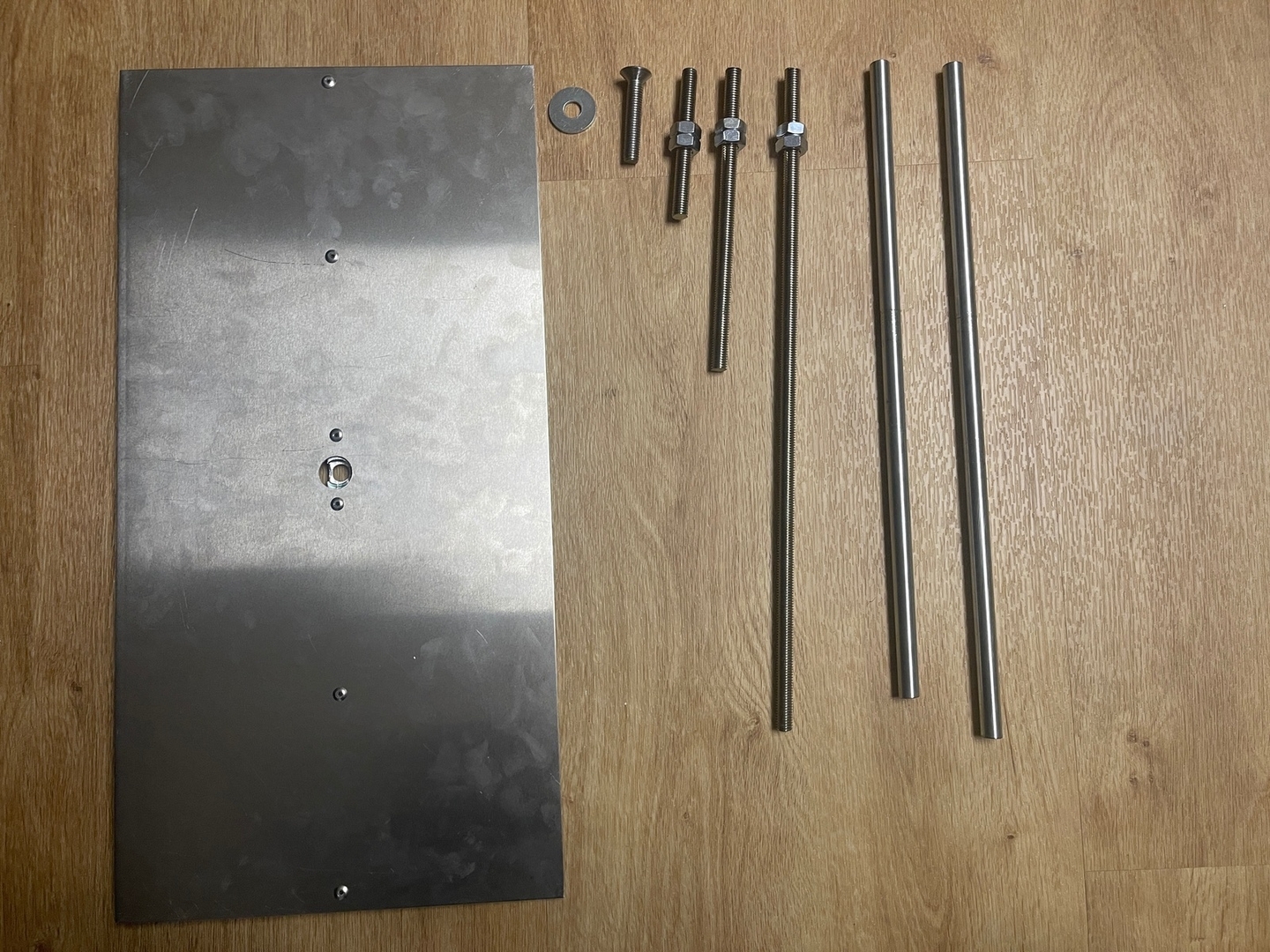 Learnings aus dem Bau: erst die Alu-Schiene unter der Platte anbohren und befestigen. Erst dann das Loch für die Senkkopfschraube bohren und ausfräsen, damit das wirklich genau in der Mitte sitzt. Da die Platte oben 25cmx50cm groß und nur aus dünnem Alu ist, wollte ich die unten noch stabilisieren.