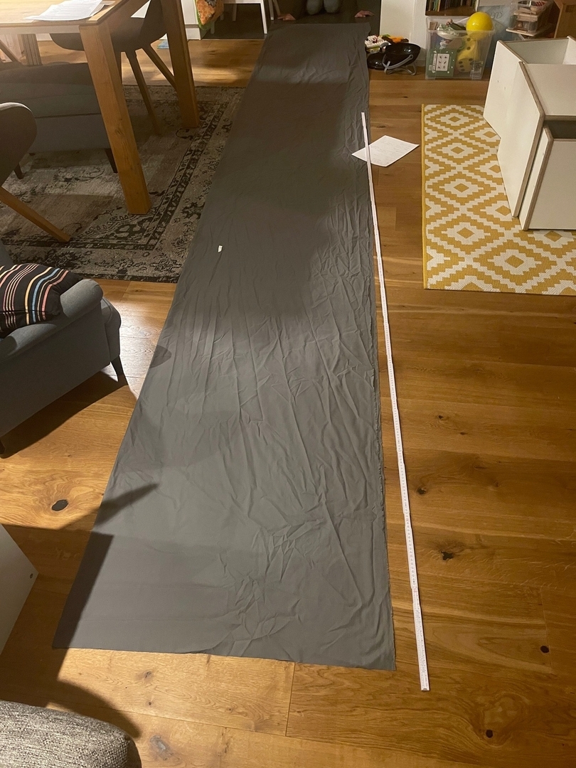 Ausgebreitet von Wohnzimmer über Esszimmer bis in die Küche war es schon ein beeindruckendes Stück Stoff, was da vor mir lag. Aber wir sind ja nicht zum Spaß hier.