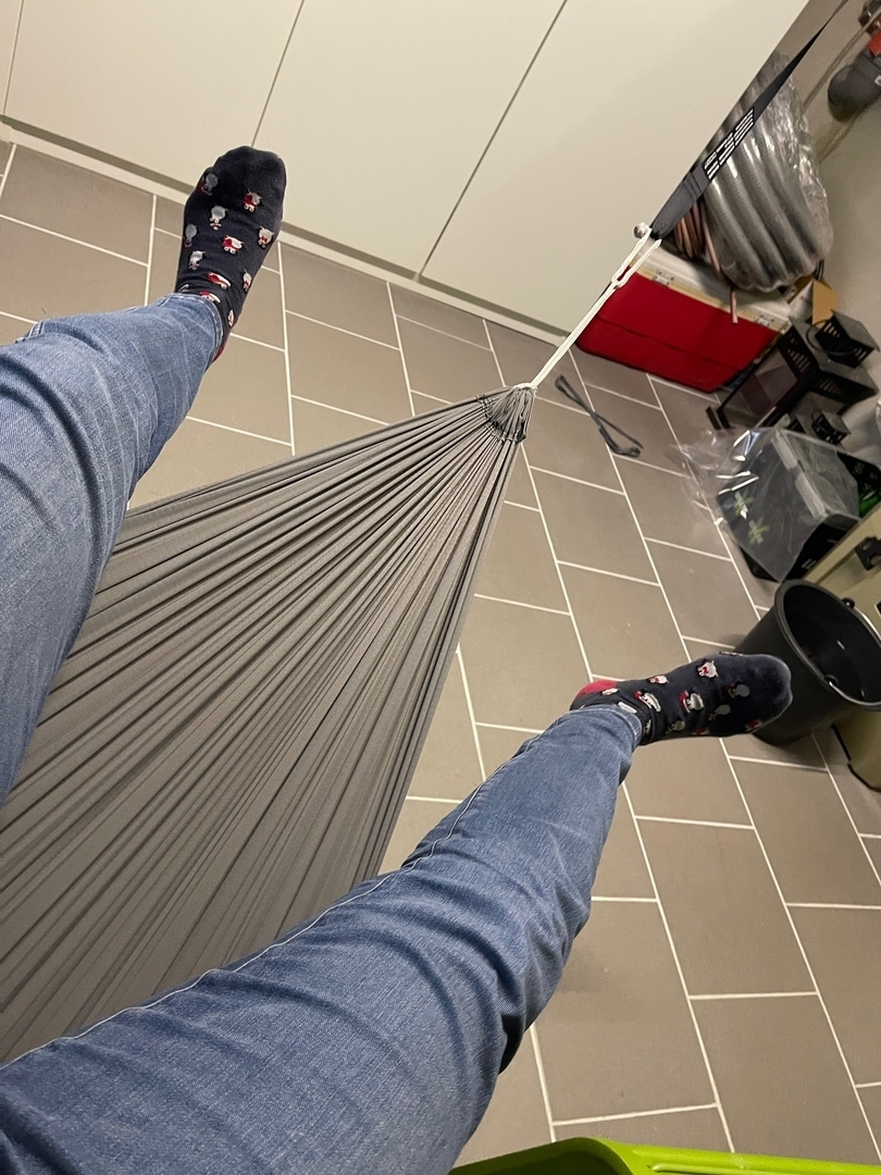 Was soll ich sagen: akkumulierte Liegezeit in der Matte mit "neuer" Aufhängung ist deutlich über der vorher und es hält. Der Stoff fühlt sich wenig elastisch und sehr angenehm an. Bisher bin ich mit der Entscheidung, das DIY-Projekt Hängematte anzugehen sehr zufrieden und kann es Anfängern nur empfehlen.