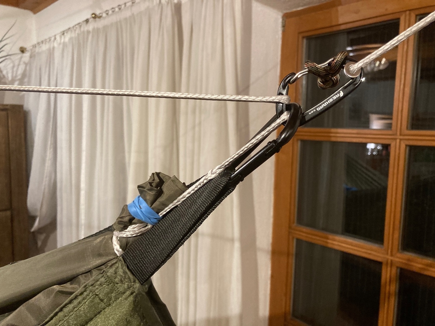 Nachdem ich die letzten Tage damit verbracht habe, mir 2 Sätze Whopie-Slings und adjustable Ridgelines und einen Soft Shackle herzustellen, hab ich mich ja vorher auch informiert. Nachdem ich von diesem Trick hier noch nichts gelesen habe, mal kurz platziert.