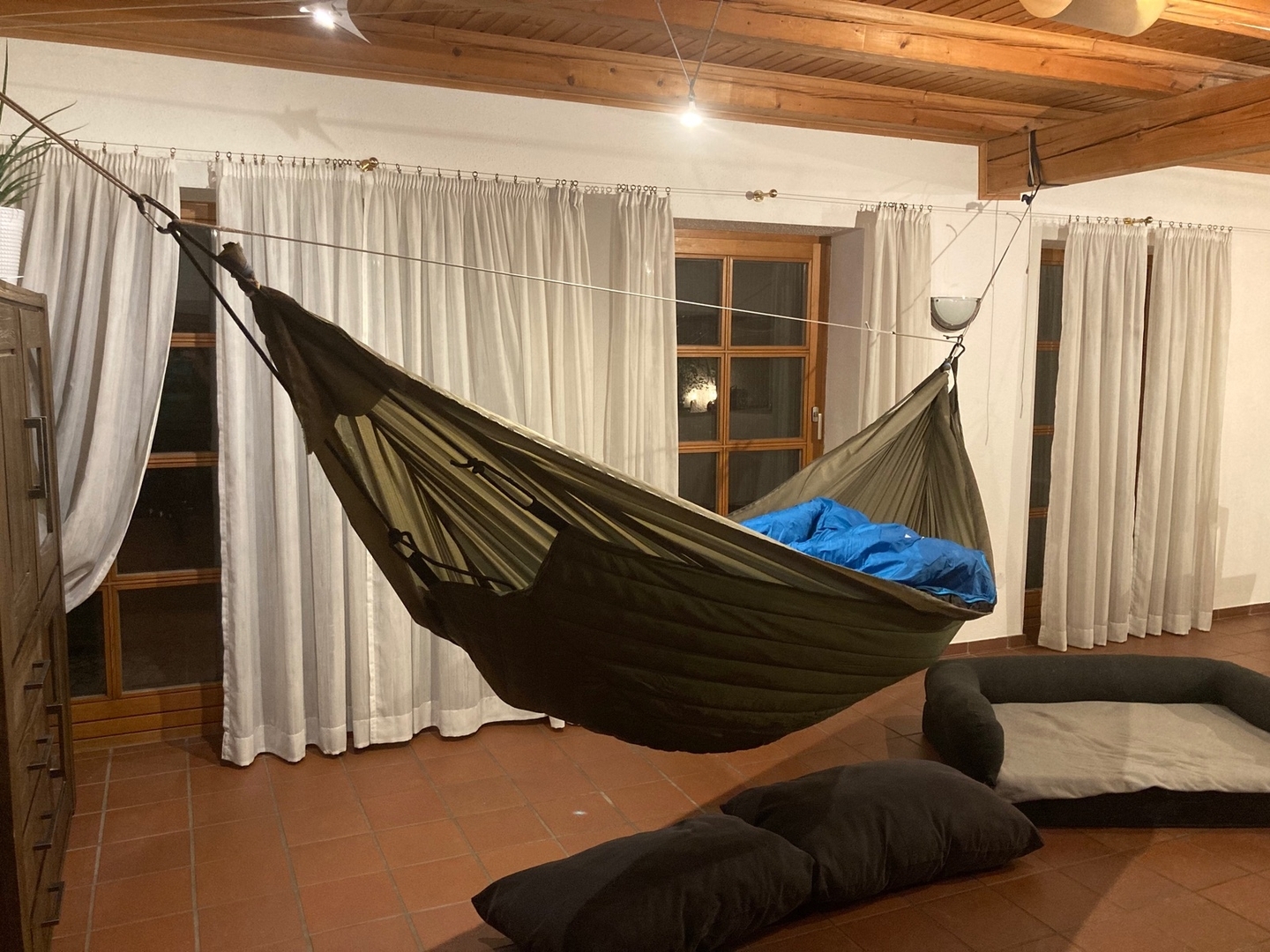 Endlich gehts mal etwas gesundheitlich bergauf. Anscheinend geht bei uns das RS-Virus rum.. Hab die letzten 2 Nächte gleich mal in der Hangmock verbracht - und geschlafen wie ein Baby. Wenn das in der 2,85m großen billo schon so toll ist, bin ich gespannt, wie es in der Eigenbau 11" Matte wird.