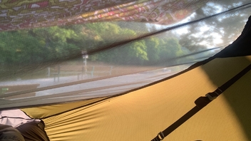 Moin, der Netzstoff ist super. Er behindert kaum die Sicht und lässt prima den Wind durch. Das einzige was ein kleiner Nachteil sein könnte ist, dass man die Isomatte nicht rausnehmen kann wenn es so warm ist, stört mich persönlich aber nicht