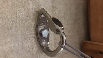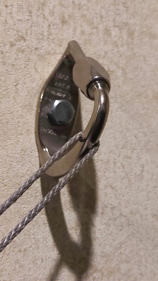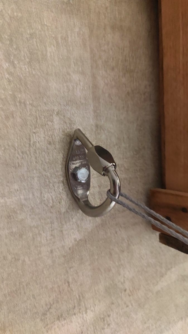 Hab die Karabiner mit dem vorderen Ende genau so eingemessen, sodass es denselben Abstand, wie zwischen 2 Balken im Wohnzimmer gibt. Wenn ich also dort nun die Umlenker anschrauben, kann ich die Whoopie Slings einfach einhängen und fertig. Liegt sich bequem. Lieg tatsächlich gerade noch drin.