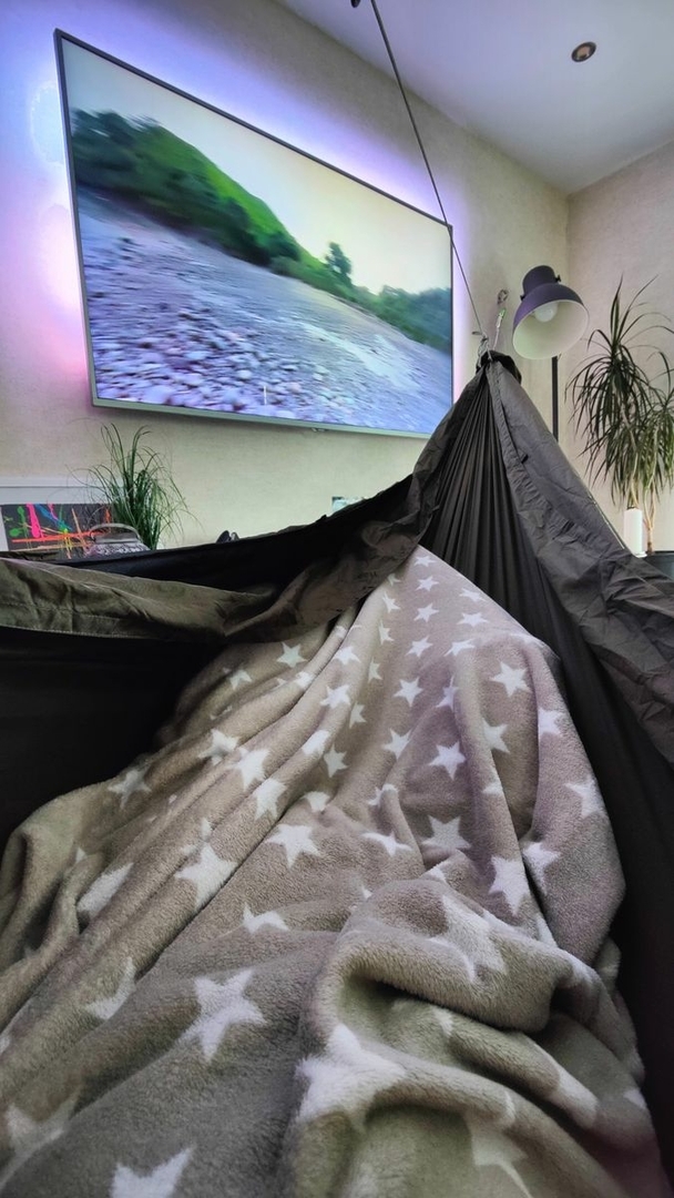 Die erste Nacht am neuen Hängeplatz ging auch erfolgreich zuende. Kurz war sie, weil der Junior schon früh wach war. Und unerwartet kalt. Musste mir zwischendrin ne Decke holen und war trotzdem sehr kalt am Rücken heute morgen. Unfassbar wie das Wohnzimmer auskühlt über Nacht