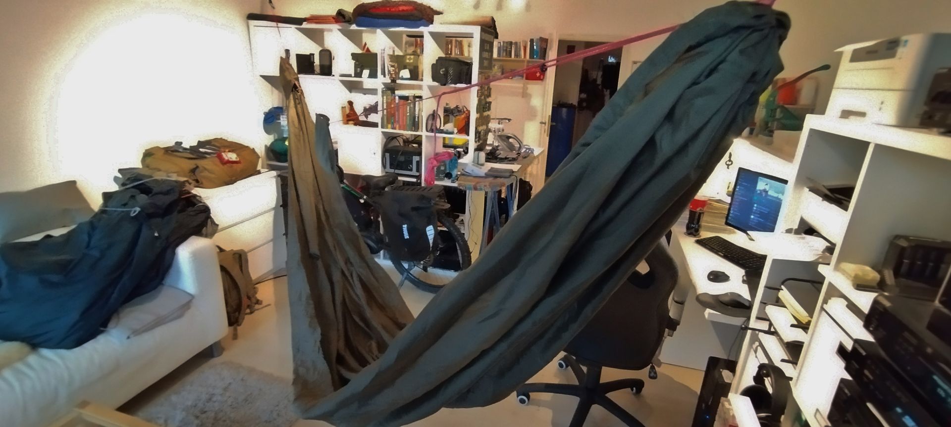 Genäht für mich als weitere Ersatzhängematte.Bilder unkommentiert: