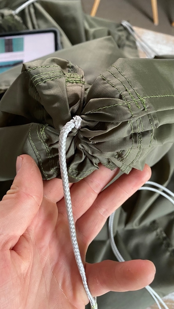 Frage zwei: Kann man bei den Whoopie Slings die bewegliche Schlaufe auch kleiner machen? Bei einer Ridgeline braucht man ja gar nicht so eine große Spanne, und man verbraucht weniger Material.