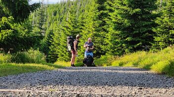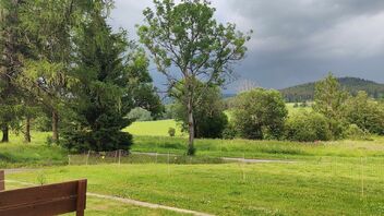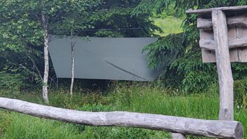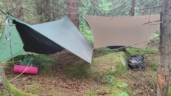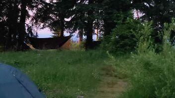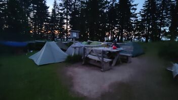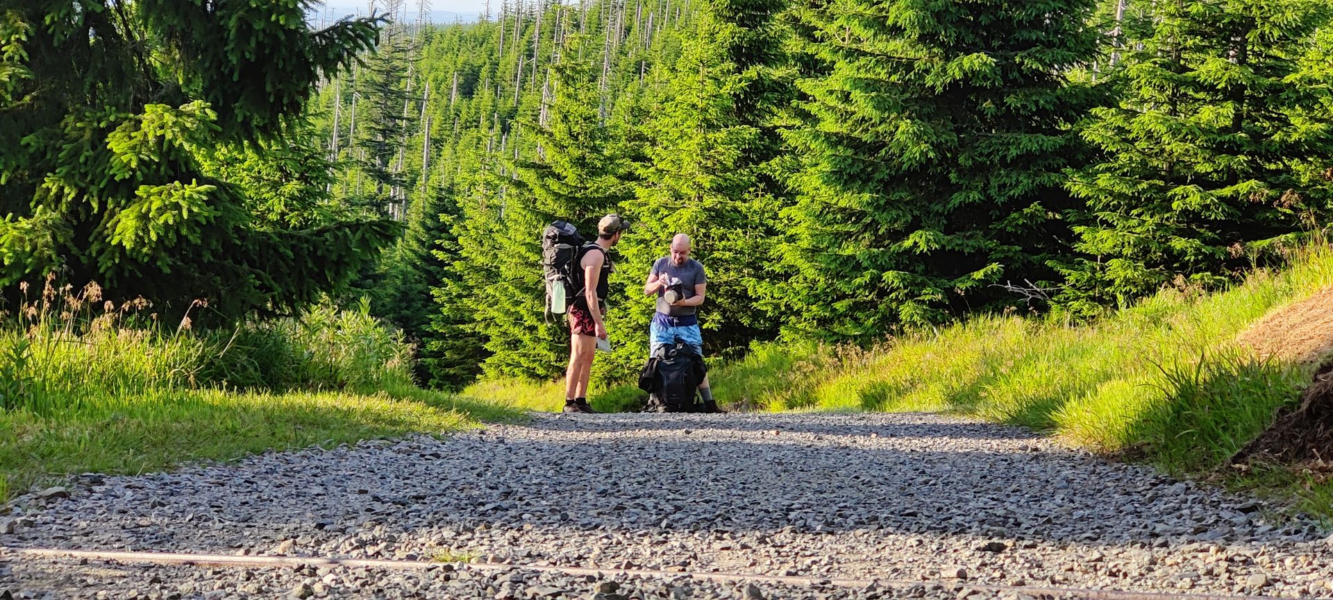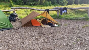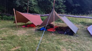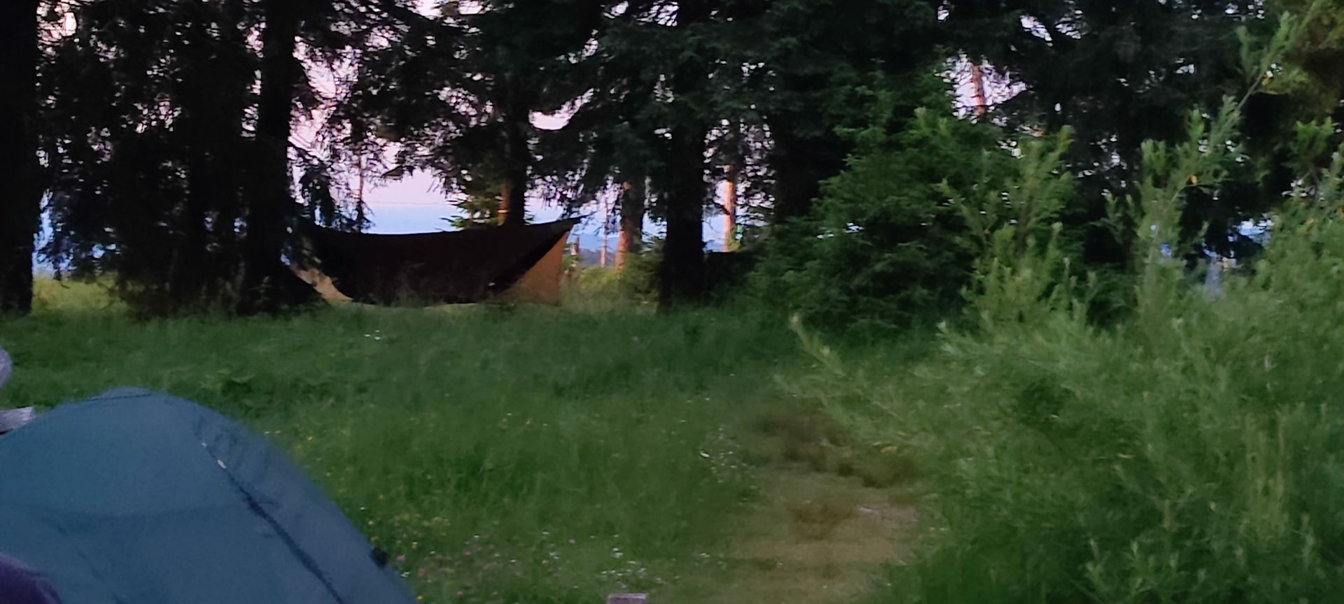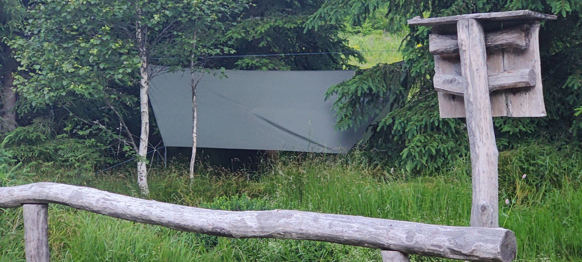 Danach sind wir zum Zeltplatz den Berg hoch gestapft. Da Strazny direkt an einer Schnellstraße liegt, die man unten im Ort deutlich hören konnte, war am Lagerplatz weiter oben nichts mehr davon zu hören. Wir sind die umliegenden Wege noch etwas abgelaufen und haben mal wieder nach Hängemattenplätzen geschaut. Diesmal war leider gar nichts zu machen. So waren wir diese Nacht alle unterm Tarp auf dem Boden.