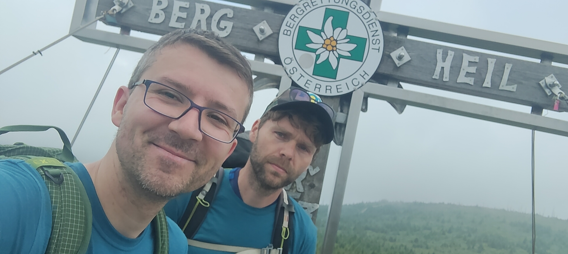 Nach und nach gewitterte es um uns herum und wir haben uns beeilt zur Spitze zu kommen immer mit einem Blick auf einen möglichen Unterschlupf, sollte das Gewitter über uns kommen. Dann eeeendlich haben wir das Gipfelkreuz gesehen und waren oben.