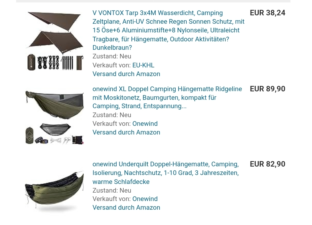 Dementsprechend suche ich eigentlich eine Hängematte, welche ich als Alternative zu dem Zelt aufbauen kann, wenn das Wetter es zulässt oder ich einfach mal entspannt eine Pause machen möchte, welche nicht gerade in einem Café oder Diner beim Arbeiten am Laptop stattfindet.
