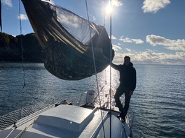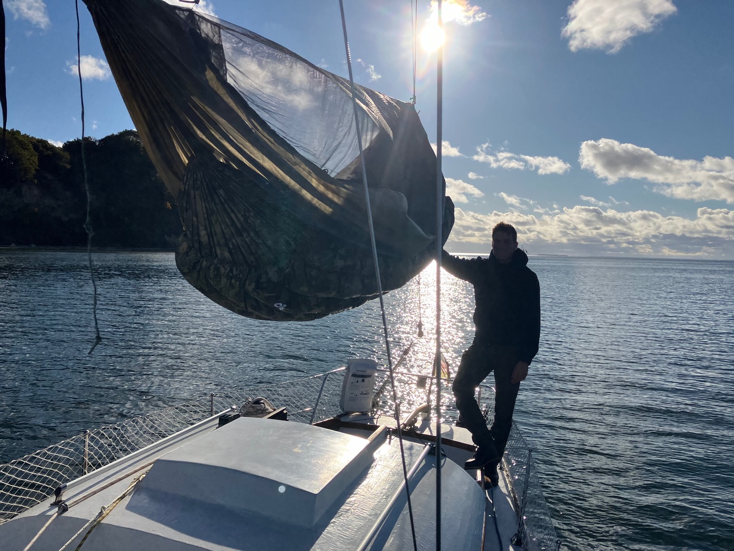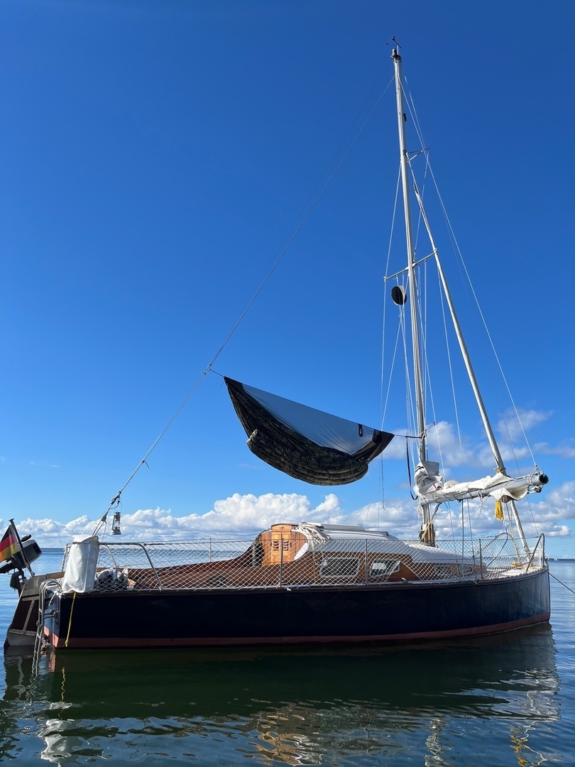 Das Achterstag gab aber auch minimal nach, hing beim Reinlegen dann noch etwa 30cm über der Kajüte 😅 -