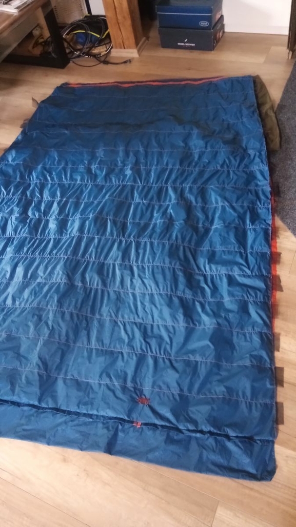 Es sollen 2 identische Quilts werden. Einzeln benutzbar und durch den Reißverschluss des Fußbox koppelbar zur Benutzung mit der Partnerin im zelt auf koppelbaren Isomatten.