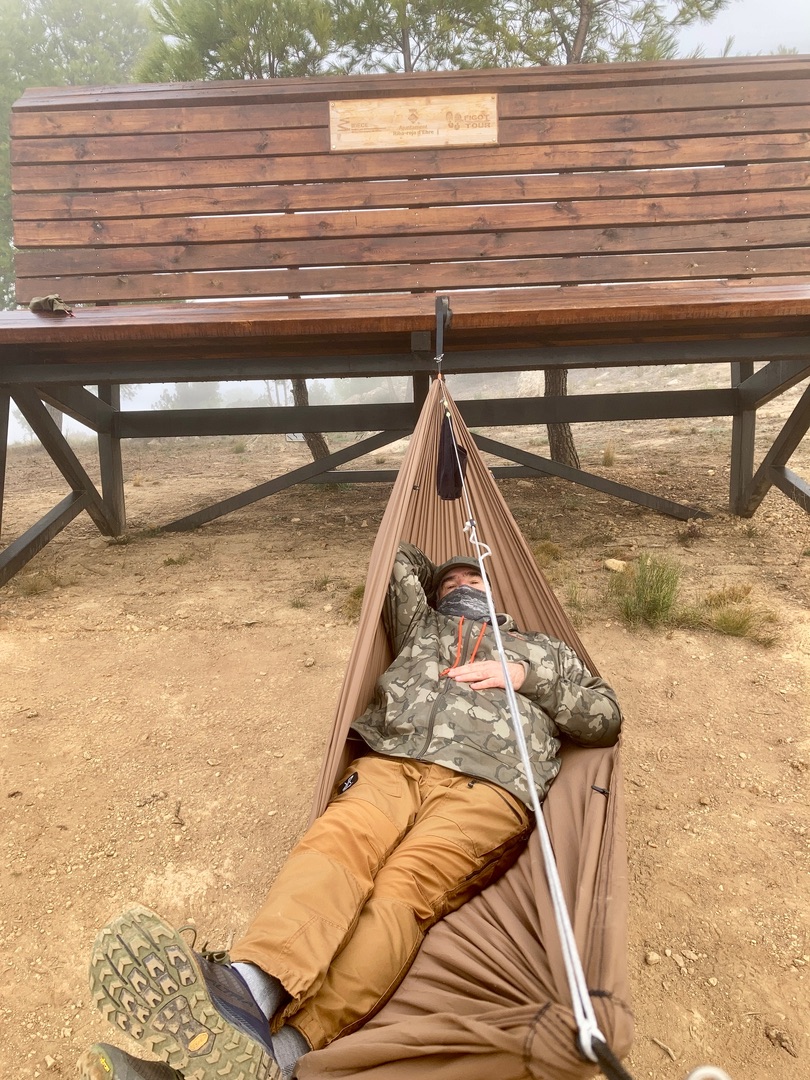 Das könnte man auch mit dem Prusik an der Ridgeline machen wenn man die Enden lang genug lässt.