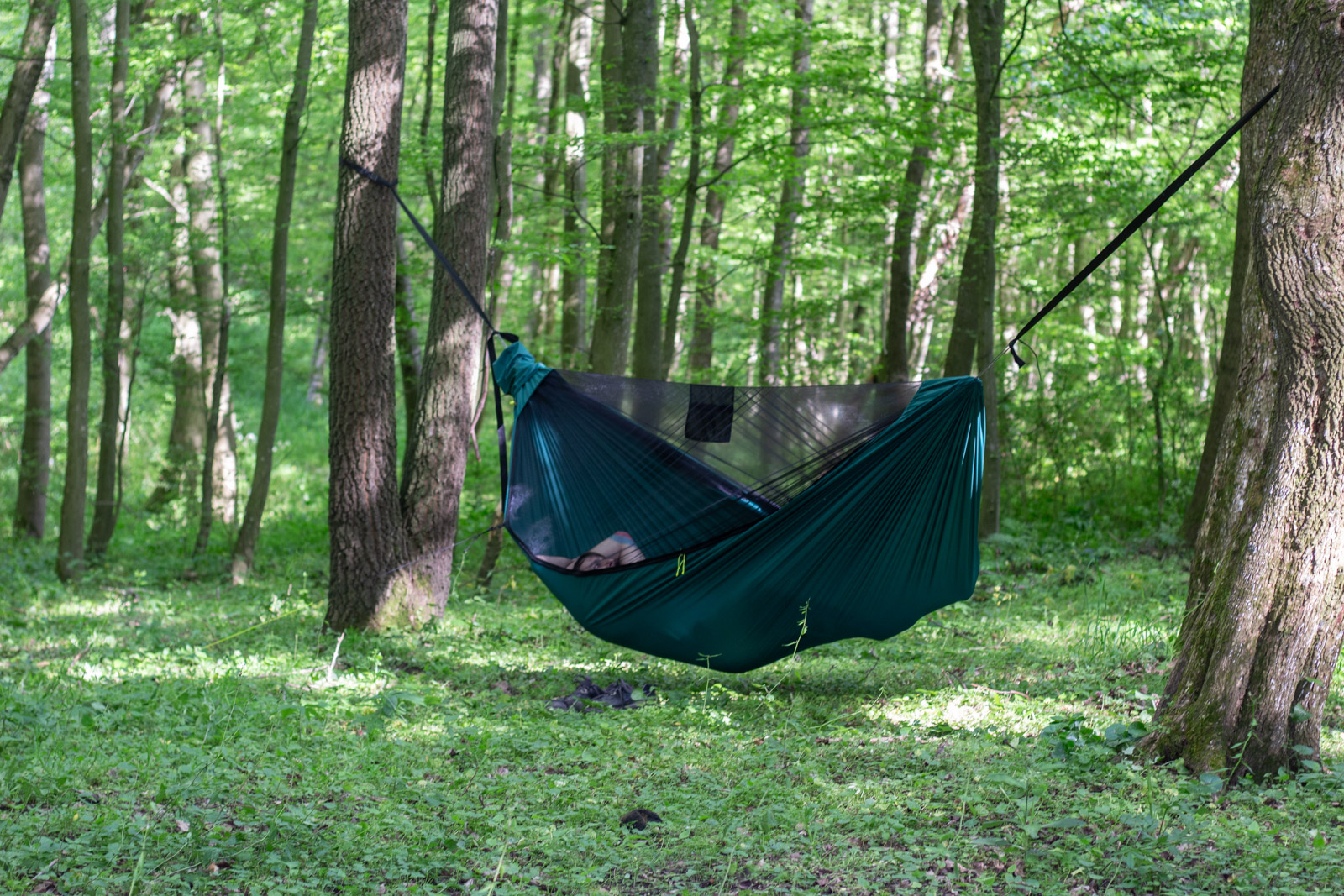 Ein kurzes Probehängen empfand ich als sehr angenehm mit dem doppelten 40D Stoff und die Breite von 150 cm gefällt mir ebenfalls sehr gut zum “chillen” .