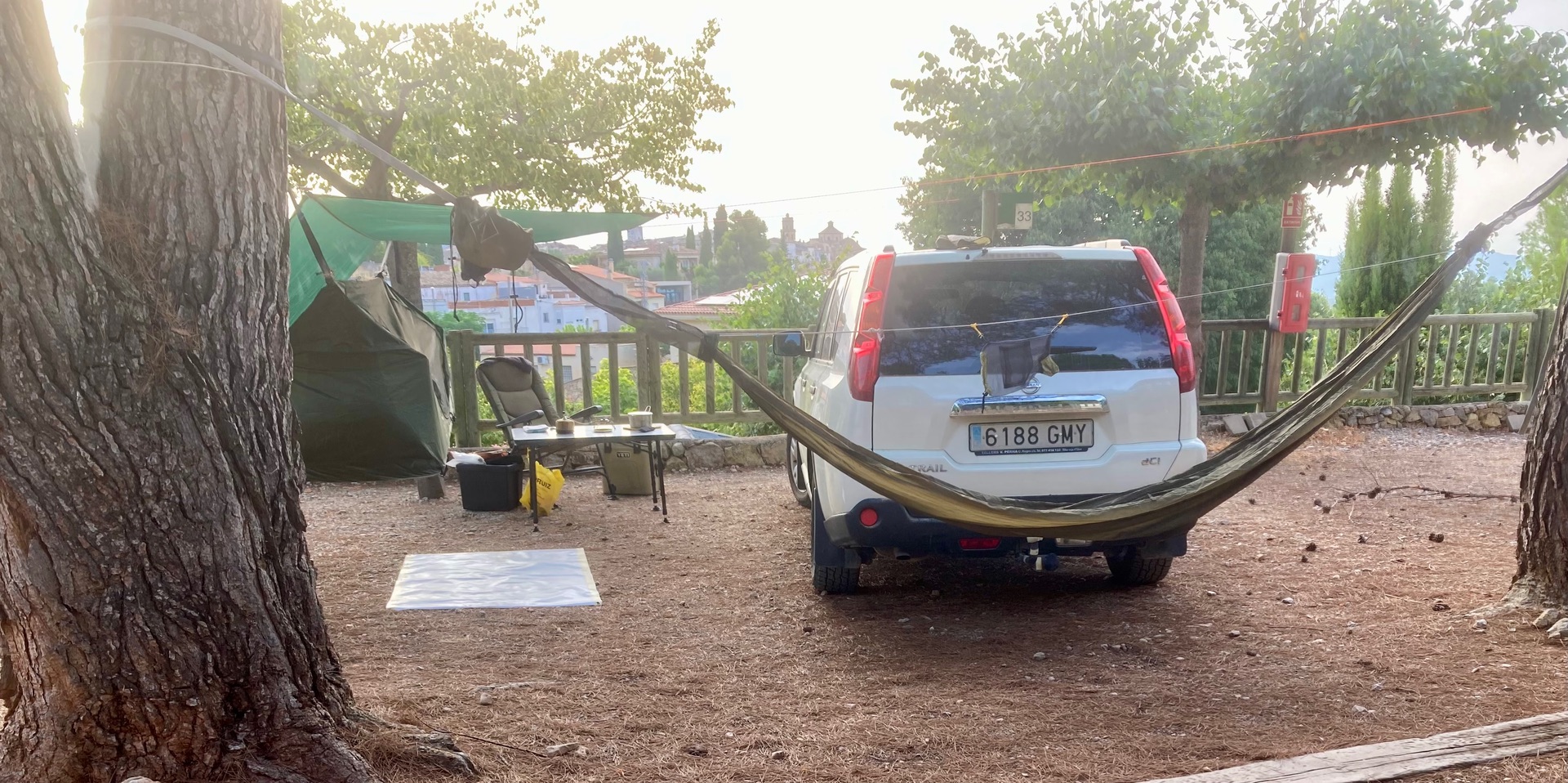 Hier in Spananien bisher auch keinerlei Probleme mit der Hängematte auf Campingplätzen gehabt .