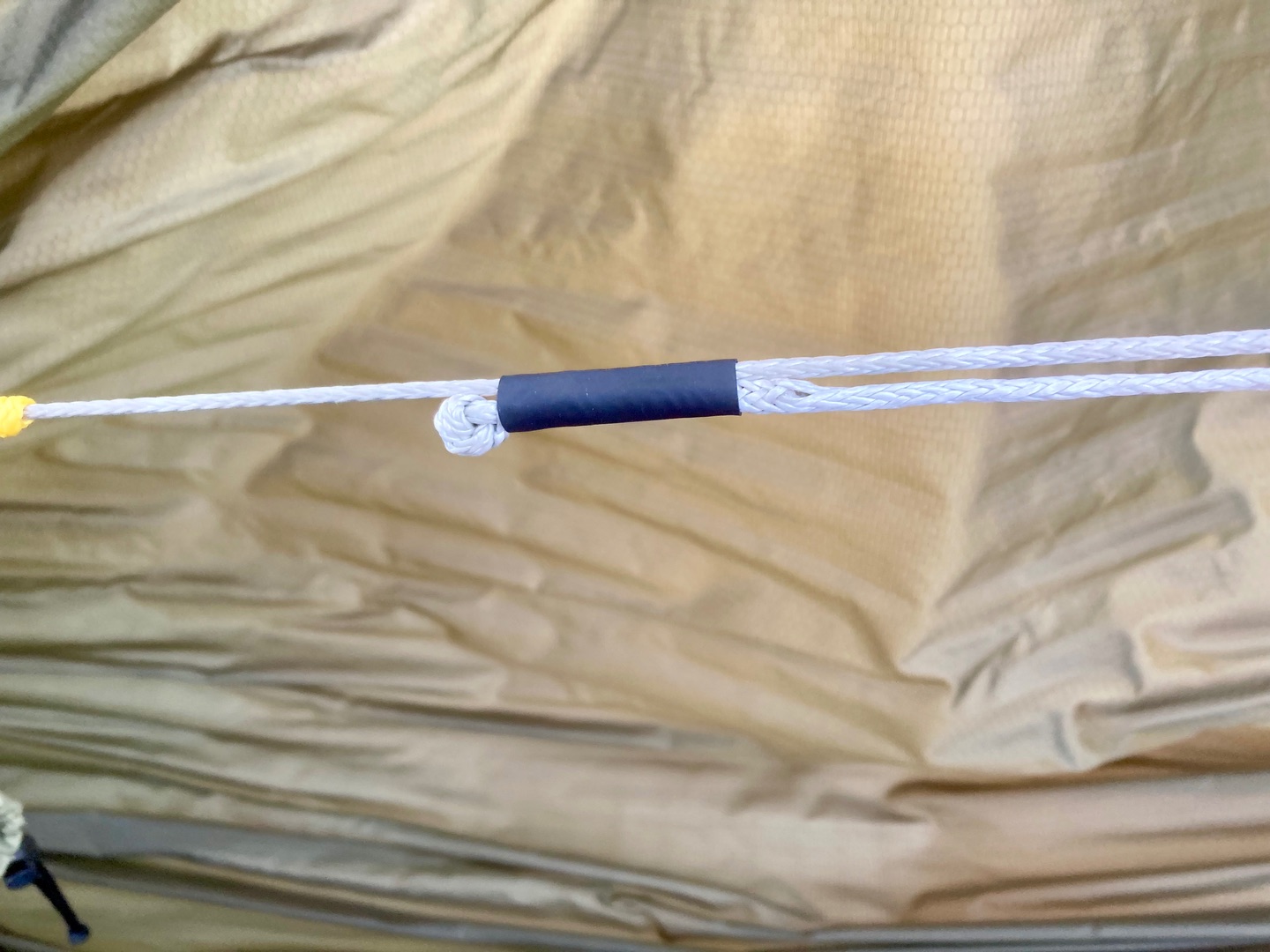 Kleinigkeiten halt aber trotzdem irgendwie nervig . Halbe Schläge mit dem losen Ende auf der Ridgeline sorgten zwar erstmal für Abhilfe aber optisch halt nicht so der Bringer und wenn man die Ridgeline denn doch noch mal verstellen möchte muss man die halben Schläge auch wieder runtermachen .