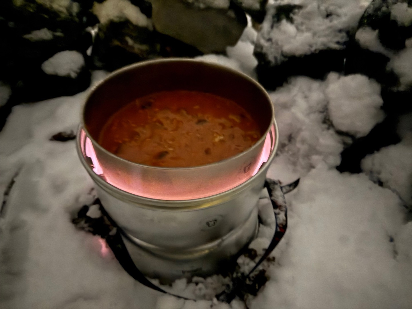 Hatte meine Lodenjacke dann offen under den Schlafsack gelegt, so dass Po und Rücken drauf lagen. Das war „die Lösung“ für unterwegs.