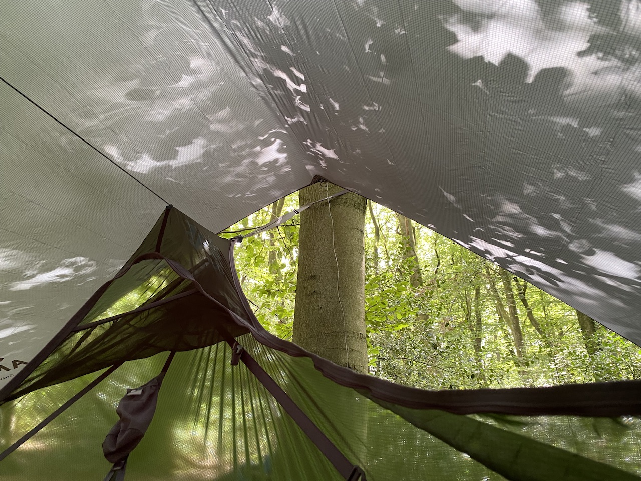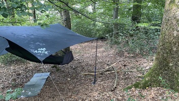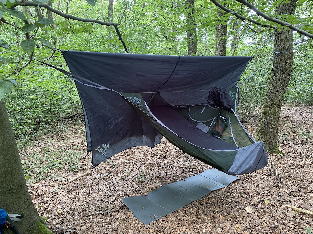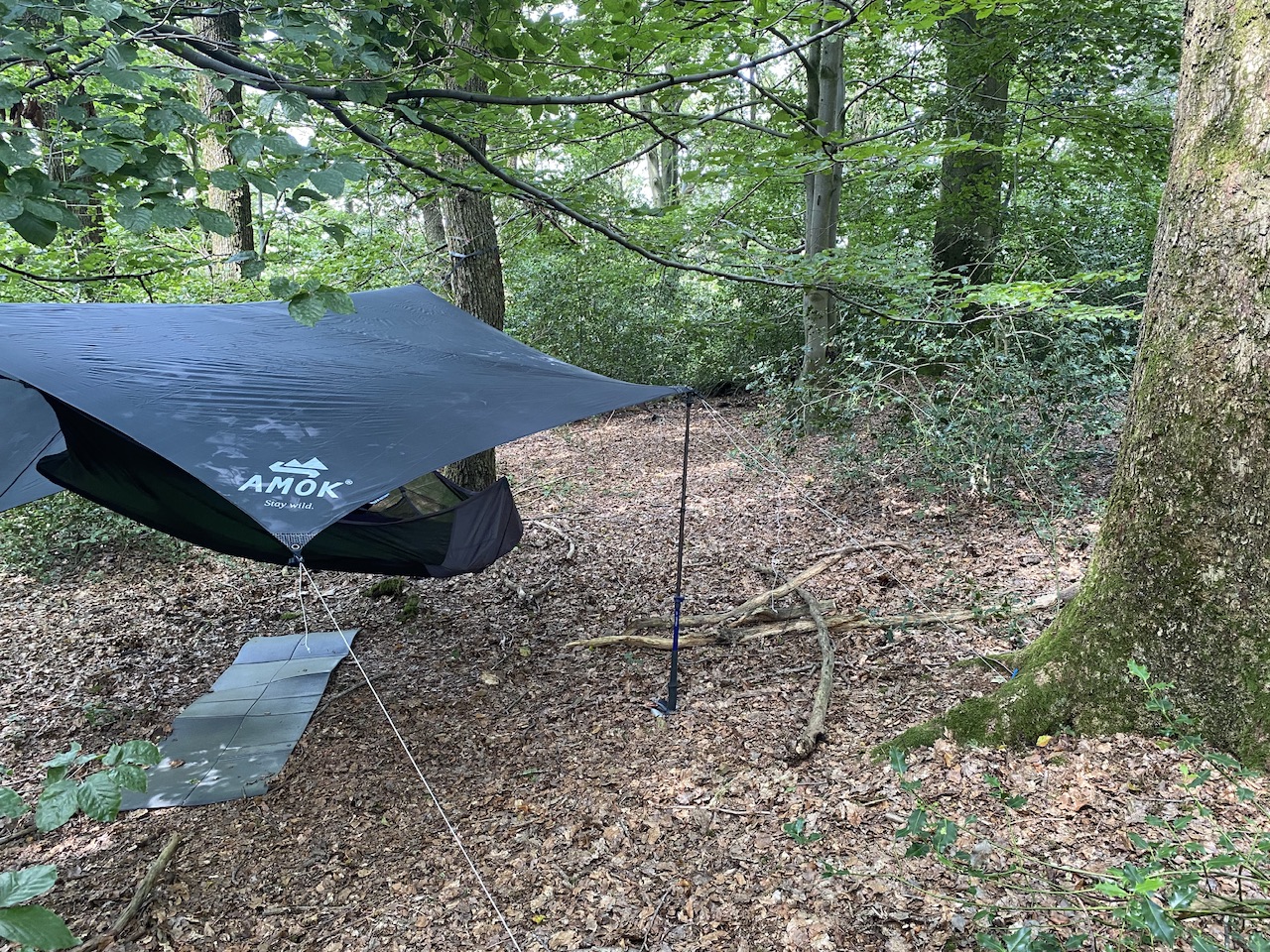 Als Tarp habe ich noch mein erstes, das Amzonas Traveler Tarp XXL (4x3 Meter), Das Tarp ist für kurze Anreisewege und „Glamping“ Übernachtungen sehr gut.