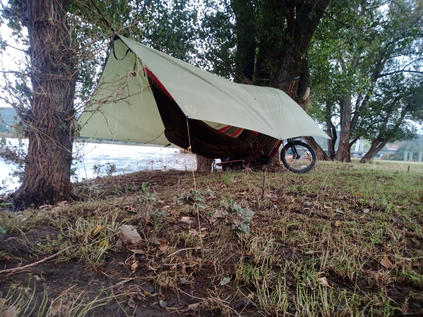 So ungefähr war das gemeint? Ist halt so schön am Wasser...! War aber zum Glück eine sehr warme Nacht gestern. Kein Nebel, kein Tau.