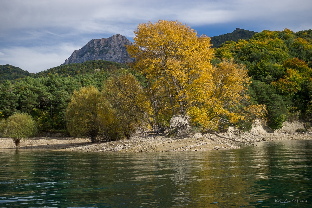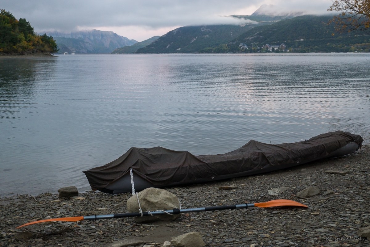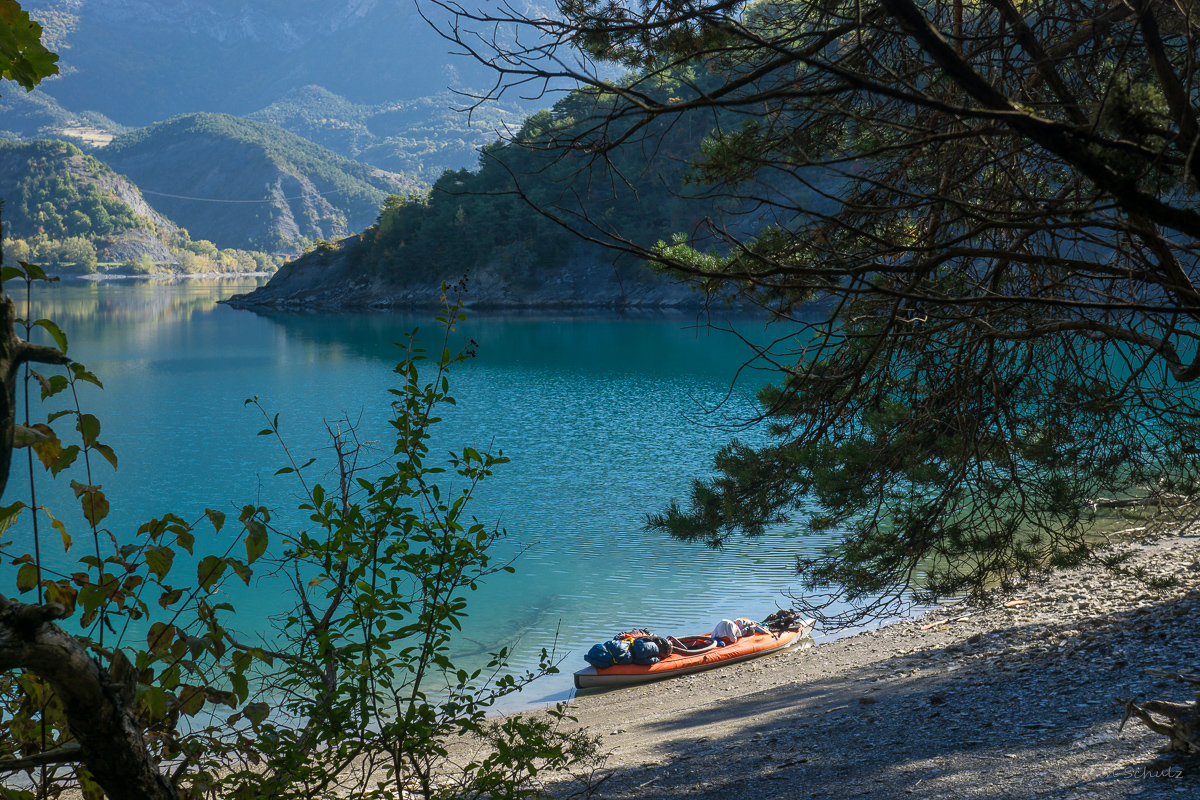 Theoretisch ist das Überqueren mit Kayaks verboten, auch deshalb meine Wahl, den See zu umrunden, mehr oder weniger ufernah, ausser am Staudamm, da muss man quer rüber.