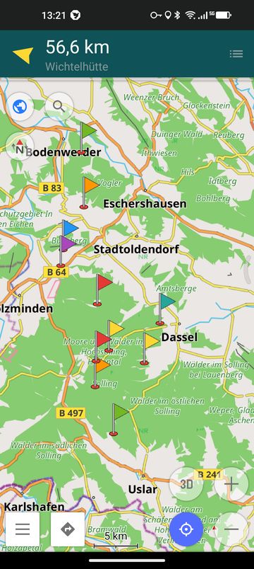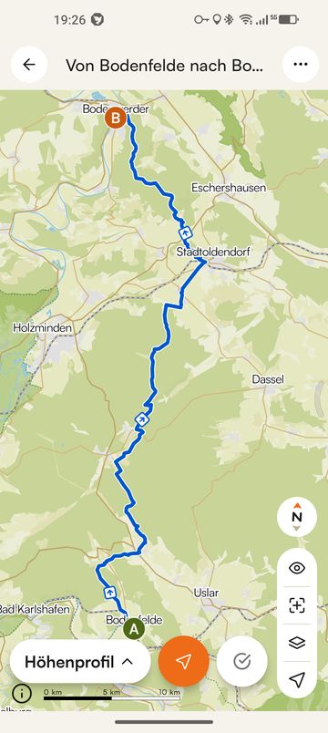 Von Mittwoch, 01.04., auf Karfreitag habe ich eine Tour durch den Solling geplant. Start in Uslar. Ziel: Bodenwerder. Die Matte werde ich in der Nähe der Quellen aufhängen. In der Hoffnung, dass im Frühling dort frisches Wasser durch meinen Filter fließt. Auf der Karte Start, Ziel, zwei Schutzhütten und Quellen markiert.