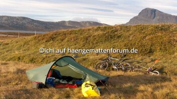 Bei meinen Touren habe ich auf jeden Fall gelernt das es sich lohnt Geld in Equipement zu investieren. Mit faulen Kompromissen oder schlechten Equipment auf Backpacking- oder Bikepacking-Touren zu gehen nervt und dann verliert man nur die Lust weiterzumachen. Von daher lieber gleich voll einsteigen. Ich kann mir auch gar nicht vorstellen warum das mit einer Hängematte nicht mein Ding sein sollte. Sieht doch super aus! Ist alles dran was man braucht: Tarp, Mückenschutz, man liegt nicht in 'ner Pfütze und alle sagen das wäre ein super komfortables Schlafgefühl. Selbst wenn es nicht toll wäre zum schlafen, schlimmer als auf 'nem steinigen Abhang in Schräglage mit Rinnsalen unterm Zeltboden kann es doch gar nicht werden. Und das hat mich bisher auch nicht abgehalten wieder loszuziehen. Wichtig ist nur das das Setup mit meinem Solozelt mithalten kann.