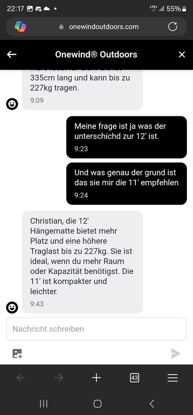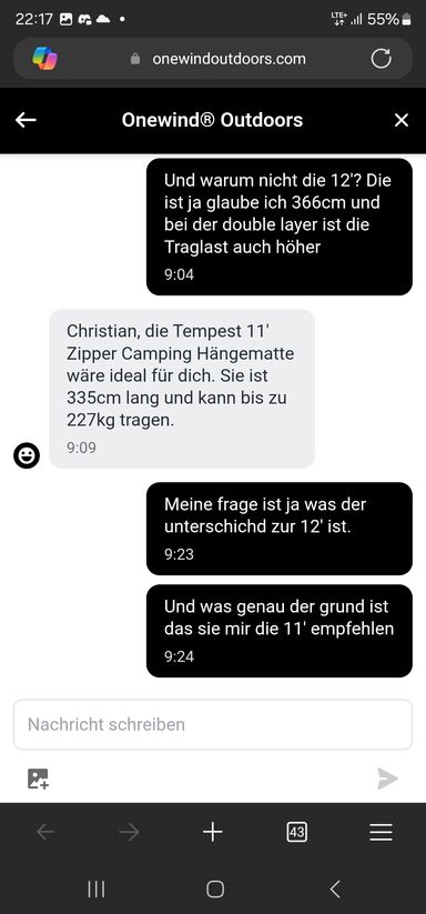 Ich hab heute mal dem Onewind-Chatbot auf den Zahn gefühlt – nach dem Motto: „Hey, was ist denn die richtige Matte für so einen wie mich?“ Antwort: 11 Fuß. Punkt.