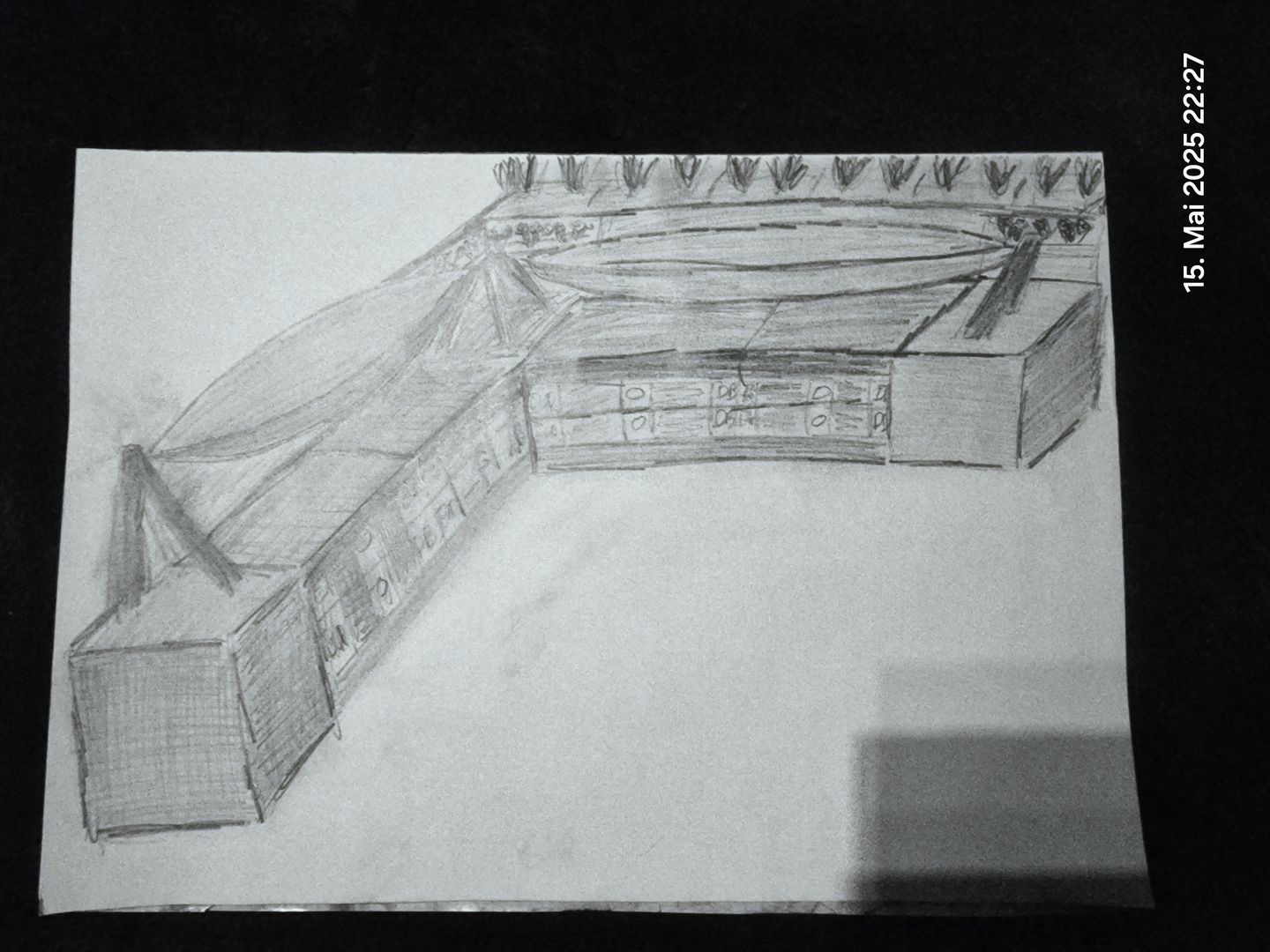 Was dann noch fehlt, sind die Paletten. Die müsste ich mir dazukaufen, aber das ist überschaubar.