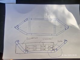 Die Idee mit einem senkrechten Pfeiler finde ich übrigens gar nicht schlecht – vor allem, wenn er leicht außermittig gesetzt wird. Die geplante Hängematte ist ohnehin breiter als mein aktuelles Modell, da macht das Sinn. Leider sind 4,2 m Spannweite schon ziemlich das Maximum, das ich auf der Fläche unterbringen kann – viel mehr Luft ist da nicht.