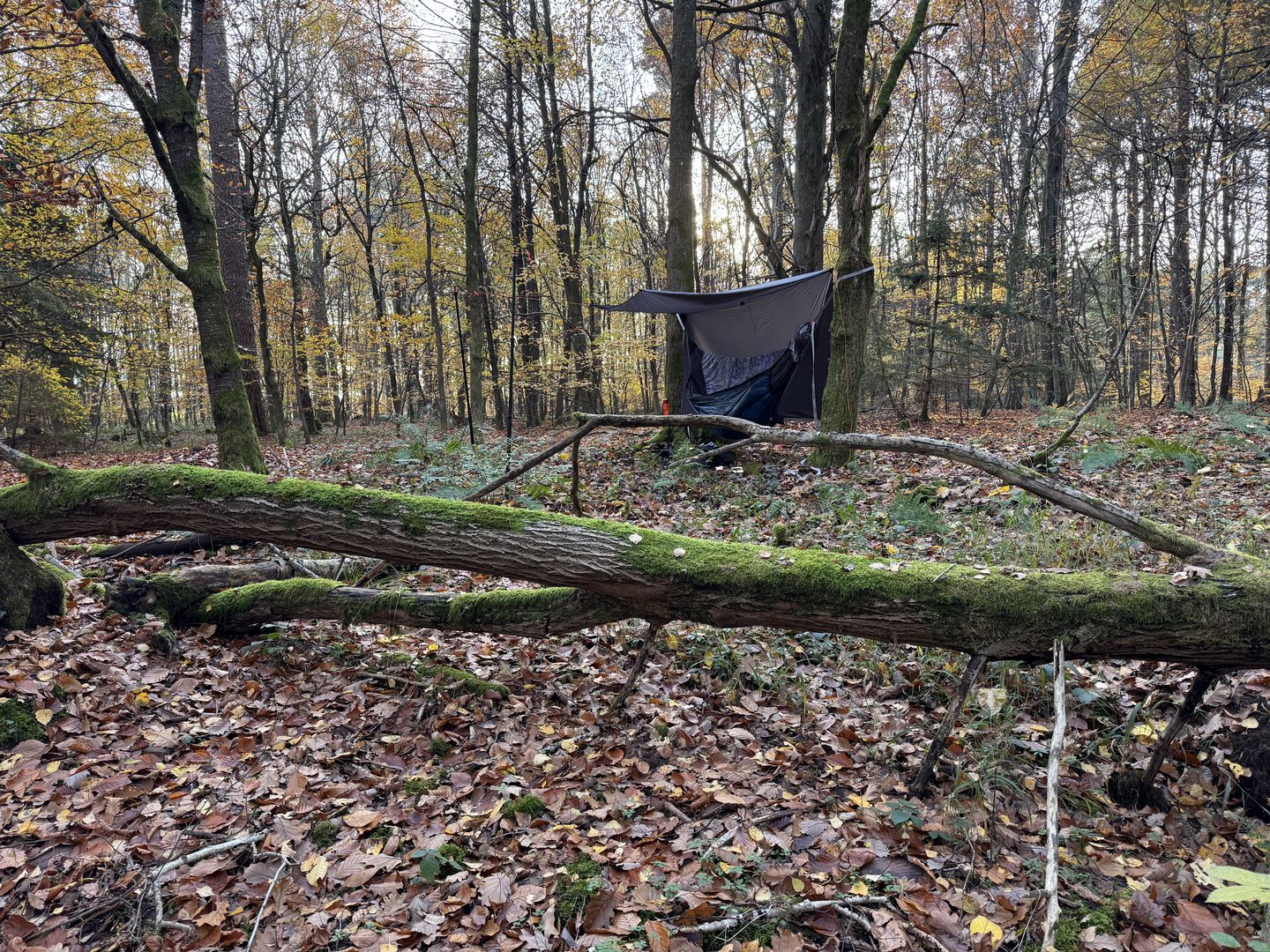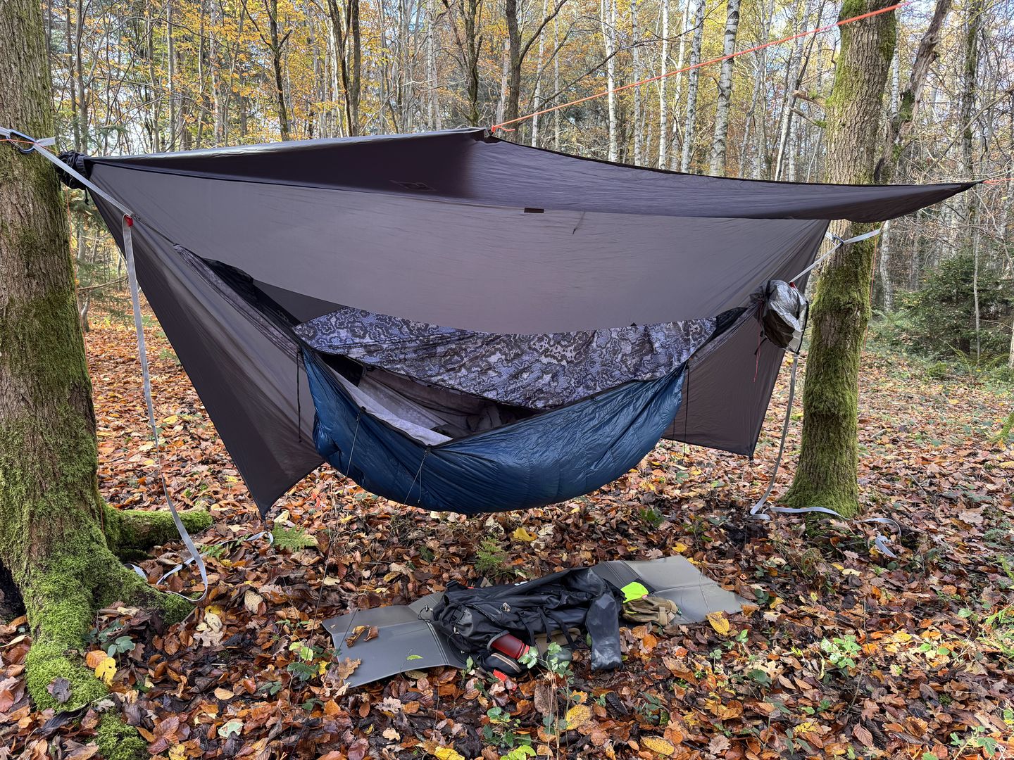 Ich bin in den Wald gegangen und habe jetzt auch eine offizielle Erlaubnis dort zu nächtigen trotz das es in BW grundsätzlich verboten ist. Wenn die Temperaturen sich wieder deutlich über der Frostgrenze befinden wage ich dann auch mal den Versuch da draussen zu schlafen. Bisher habe ich hauptsächlich ausgekundschaftet und es mal tagsüber ausprobiert. Man liegt mit Bäumen deutlich besser und seit ich bei mir daheim von amazonas die ultralight microrope Aufhängung dran gemacht habe statt so nen Schlaufenzeugs ist auch da das liegen besser da deutlich besser zum Einstellen.