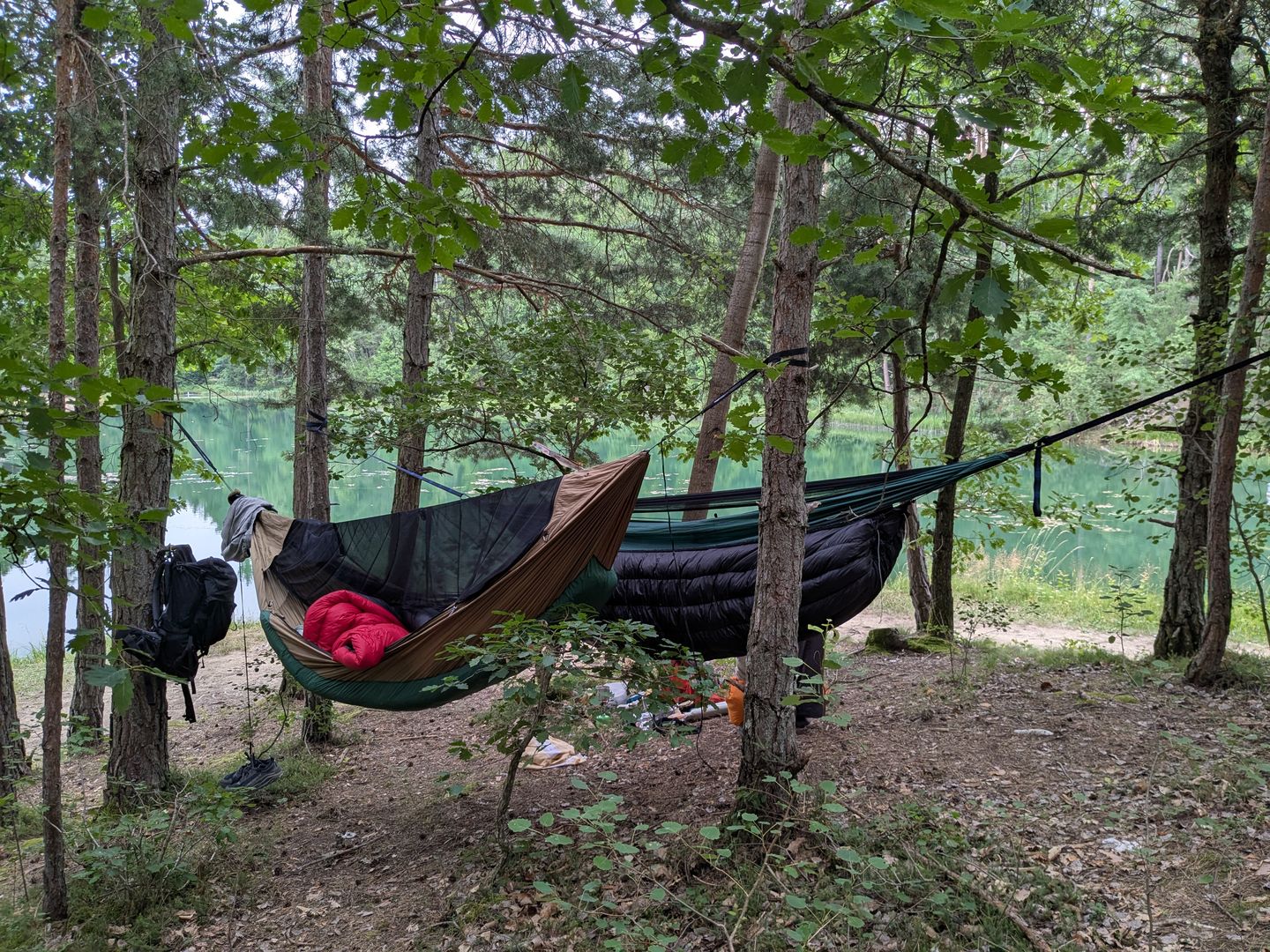 Über diese Erfahrungen habe ich natürlich begonnen mich mehr für mein Set-up zu interessieren und bin dabei auch über dieses Forum gestoßen. Bis vor nicht all zu langer Zeit besaß ich neben meiner DIY Matte aus Brasilien nur eine ganz einfache Decathlon-Matte, die ich wegen ihres angenehmen Stoffes tatsächlich auch jetzt noch wähle, um zum Beispiel einfach einen Nachmittag am See zu hängen. Aber ich wollte mich natürlich auch auf unterschiedlichere Temperaturen und Wetterlagen einlassen können also begann ich mir, nicht zuletzt motiviert durch eine ordentliche Gehaltsauszahlung, Gedanken über ein modulares Set-Up zu machen. Und so kam eines zu dem anderen. Mittlerweile bin ich grob zweimal die Woche draußen im Wald, bereit für viele Wander- und Reiseszenarios und habe begonnen auch das Set-Up meiner Geliebten und großartigen Abenteuer-Genossin mit MYOG-Elementen auszubessern. Denn man lernt immer dazu und es gibt nichts schöneres als diese Erfahrungswerte in die Praxis umzusetzen. Auch wenn ich zugeben muss, dass das meiste davon noch in der Planung ist.