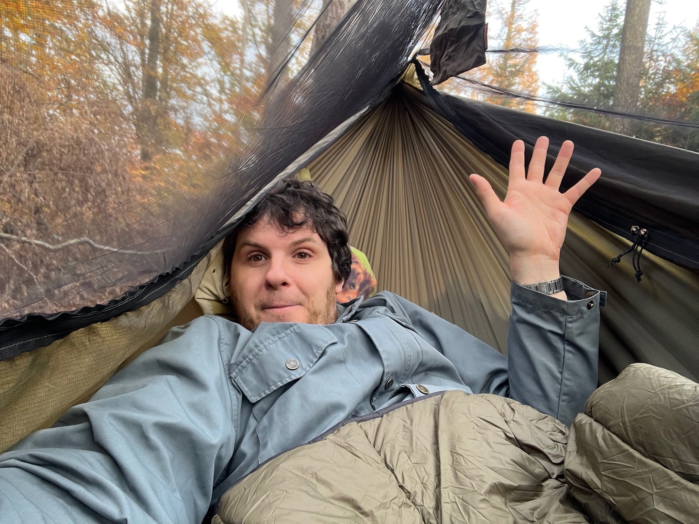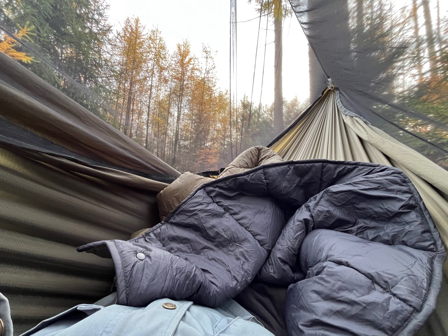 War leider nix 😅. Mir wurde zu kalt und ich musste ins Bett ausweichen. Ich hatte keinen underquilt und ich musste improvisieren und hatte mir versucht selbst einen aus einer zweiten Hängematte zu basteln. Hat nicht geklappt 😆.