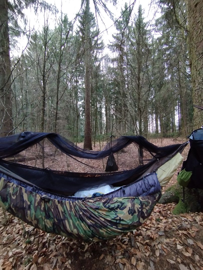 vorgestern hab ich (57) wieder im Wald rumgehangen, tagsüber am Teich (onewind double layer, Therm-a-Rest xlite wide) und nachts tief IM Wald (Amazonas xl quilted, cocoon down underquilt, Therm-a-Rest Corus -6, 3F Tyvek). Als dann nachts die Rehe immer ganz nah gekommen sind, ehe sie gemerkt haben, dass ich hier schlafen will, ist mir die Pumpe ganz schön gegangen... hätten ja Wildschweine sein können. Und dann das Geballere der Jäger...