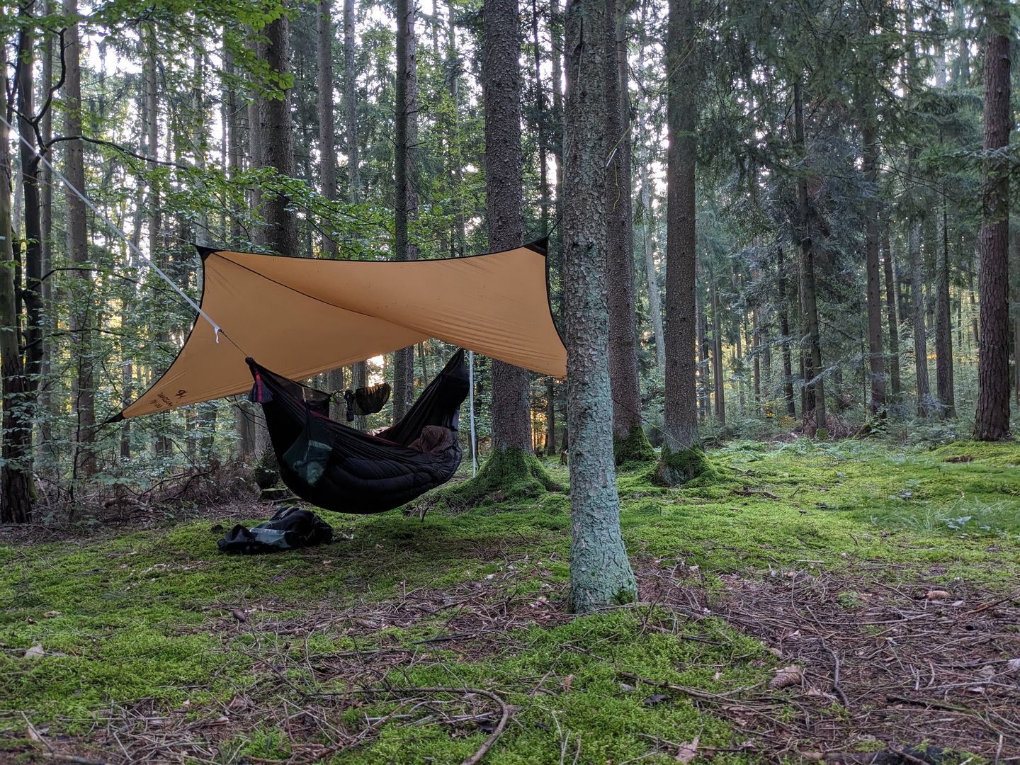 Ich hab vor einigen Jahren auch die meiste Hardware ersetzt, unter anderem hab ich einen Softshackle an der Tarpaufhängung ausgetüftelt. Mit dem Ergebnis war ich so zufrieden, dass ich auf dieselbe Weise auch bei der Hängematte mach. Das Dyneema-Gurtband lässt sich gut knoten. Und der Diamant- und der Schmetterlingsknoten haben beide eine Knotenstärke von etwa 75 %, dami kann ich gut leben.