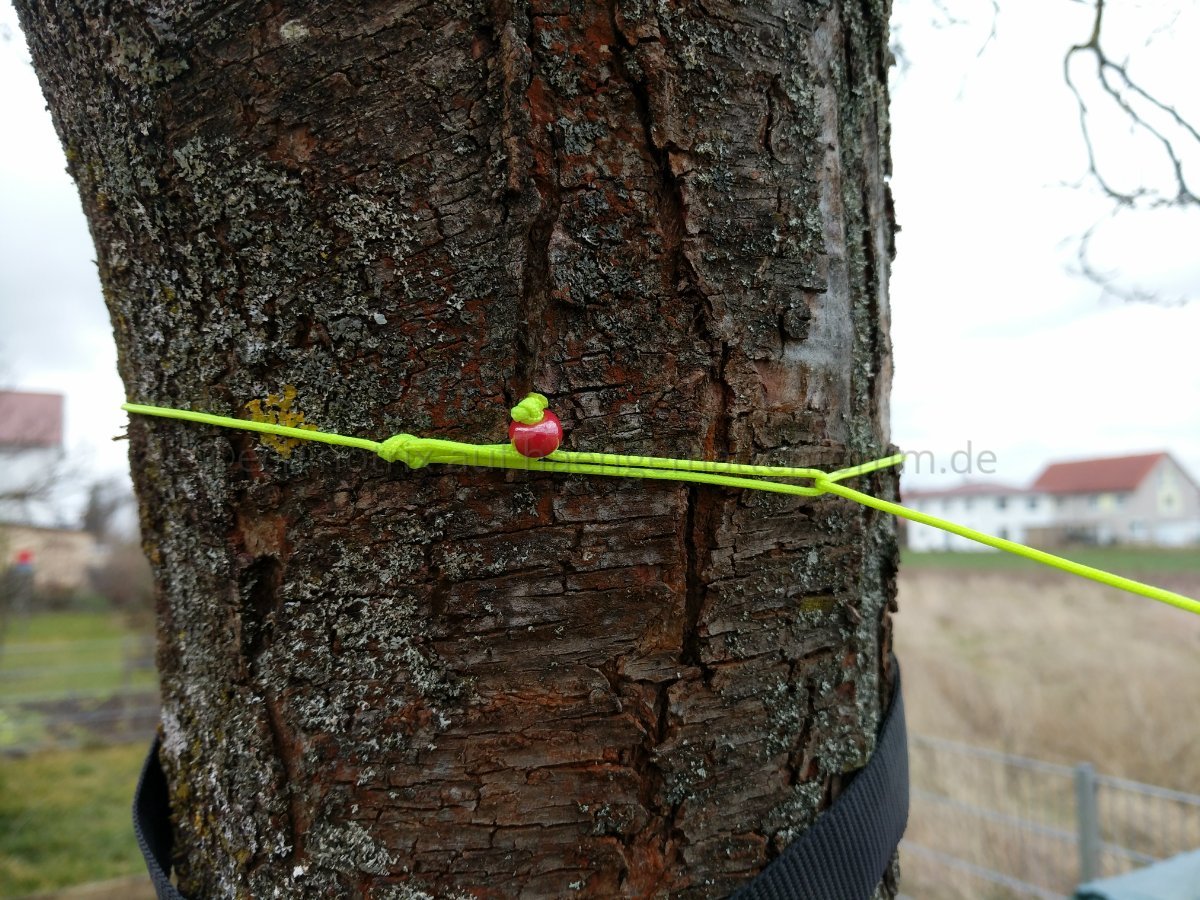 Eine Glasperle aus'm Bastelladen auffädeln, Achterknoten ganz an's Ende der Leine, dann in etwa 10 cm Abstand vom Ende eine Schlaufe mittels Schmetterlingsknoten machen - fertig. Angewandt wird das Ganze folgendermaßen: