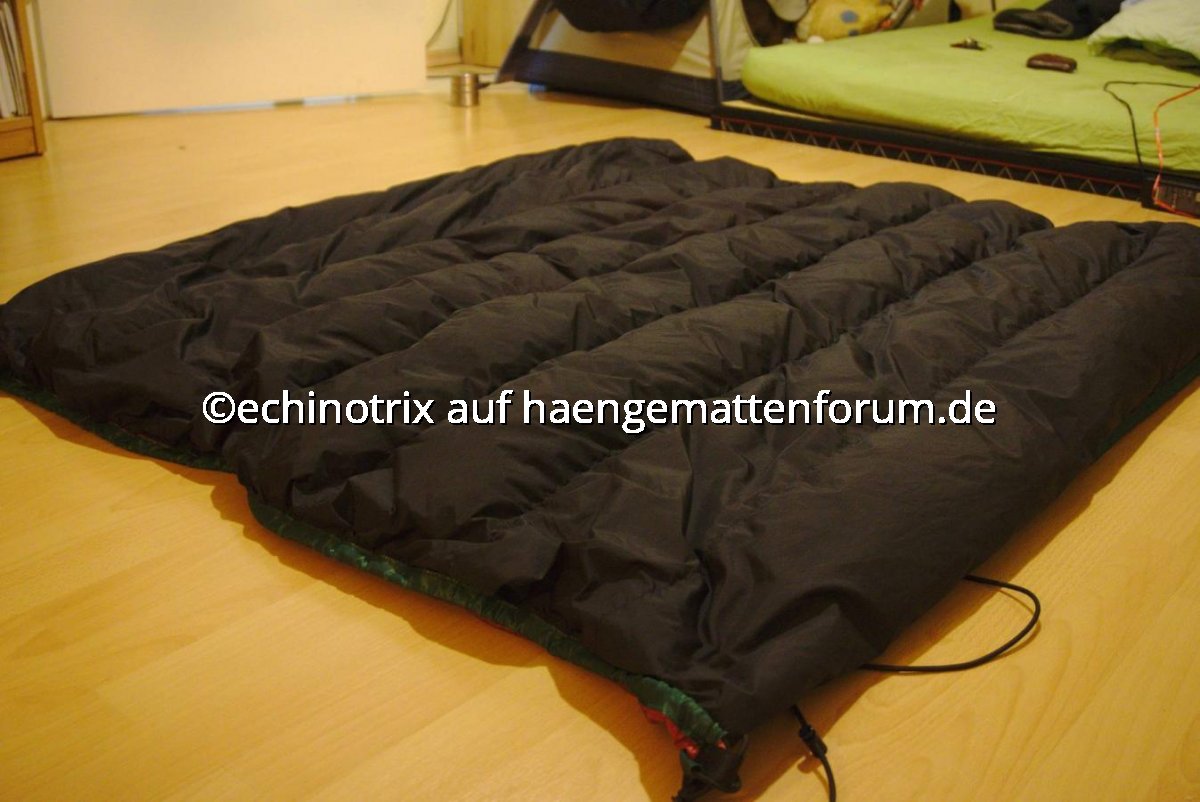 ich habe mich an etwas ein bisschen Schwierigeres gewagt, das ich Euch hier Präsentieren möchte: meinen 3-4-Season-Daunen-Underquilt.
